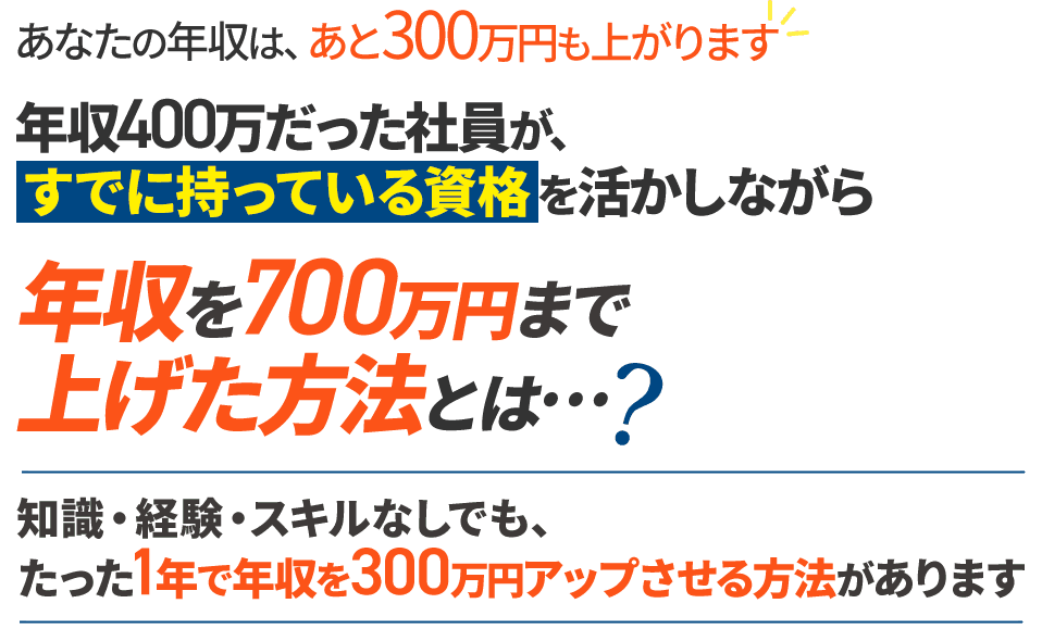 結論をお伝えすると、ある資格をかけ合わせて持つことで、あなたの収入を1年で200~300万円以上もアップさせることができます。